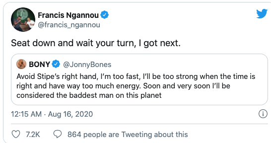 Francis claimed his spot responding to Jon Jones. “Seat down and wait your turn, I got next,” Francis tweeted.